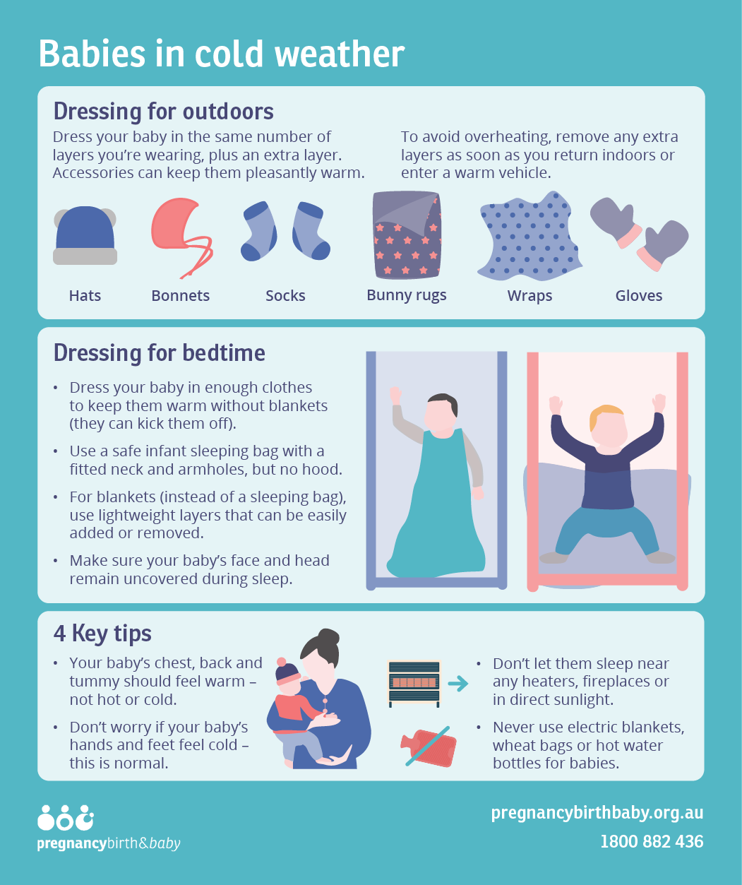 - Cold weather can impact your baby — they may also overheat if they are dressed too warmly.